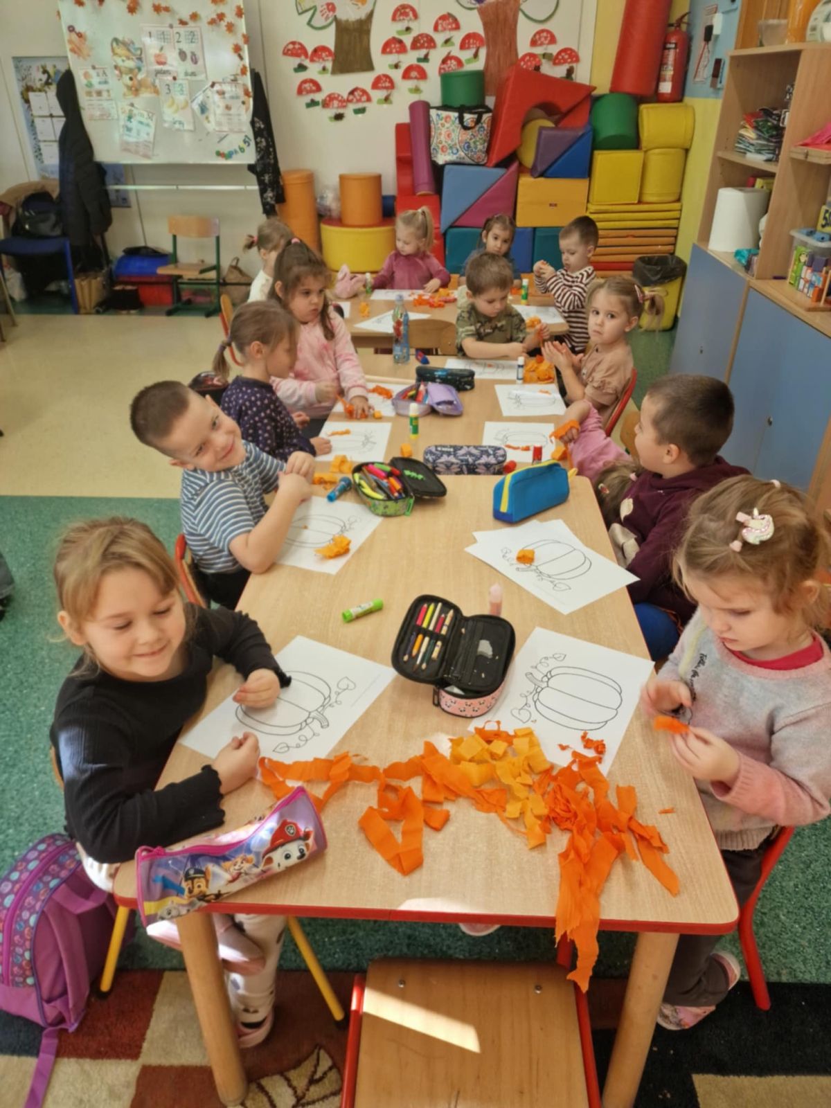 • 3. Czterolatki z przedszkola wyklejają dynie