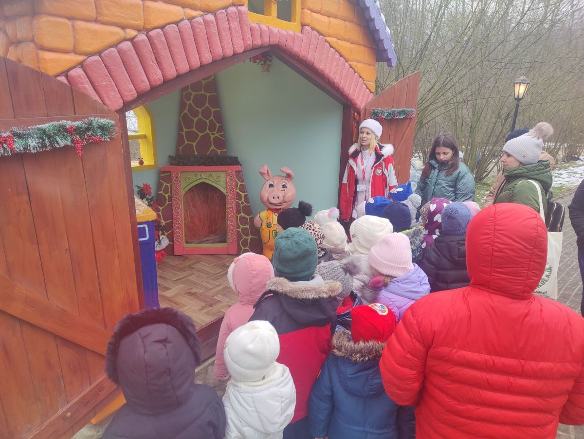 Pierwszym etapem zwiedzania był spacer przez czarodziejską Krainę Baśni. Oprowadzane przez pomocnicę Świętego Mikołaja dzieci z wypiekami na twarzy odkrywały kolejne zakamarki wioski, odwiedzając chatki znanych im doskonale bohaterów. Przedszkolaki zajrzały do domków Kota w Butach, Królewny Śnieżki i Czerwonego Kapturka, sprawdziły solidność domku Trzech Świnek i przeglądały się w magicznym lustrze Calineczki. Wielkie wrażenie zrobiła również wizyta w mroźnym królestwie Królowej Lodu oraz spacer nad stawem Złotej Rybki, gdzie każdy mógł w myślach wypowiedzieć swoje najskrytsze życzenie.