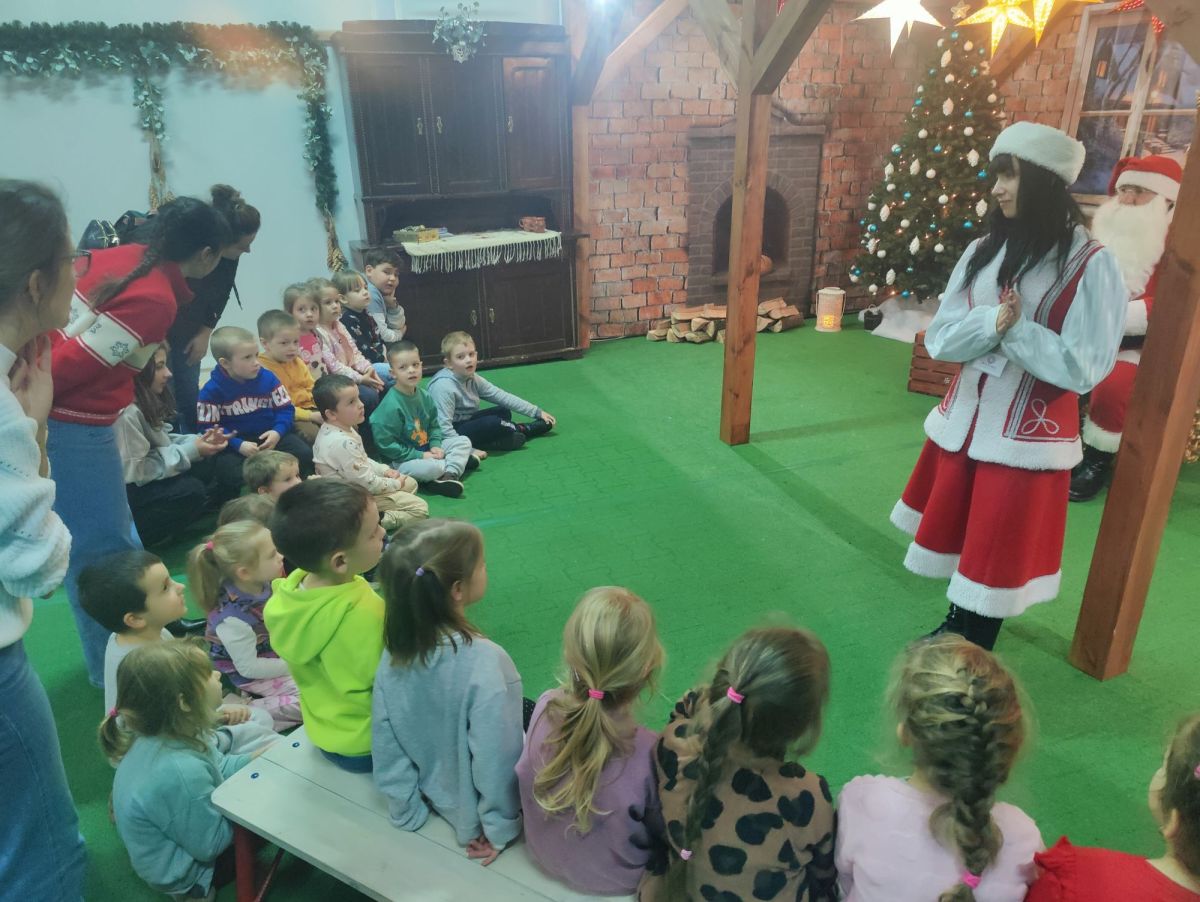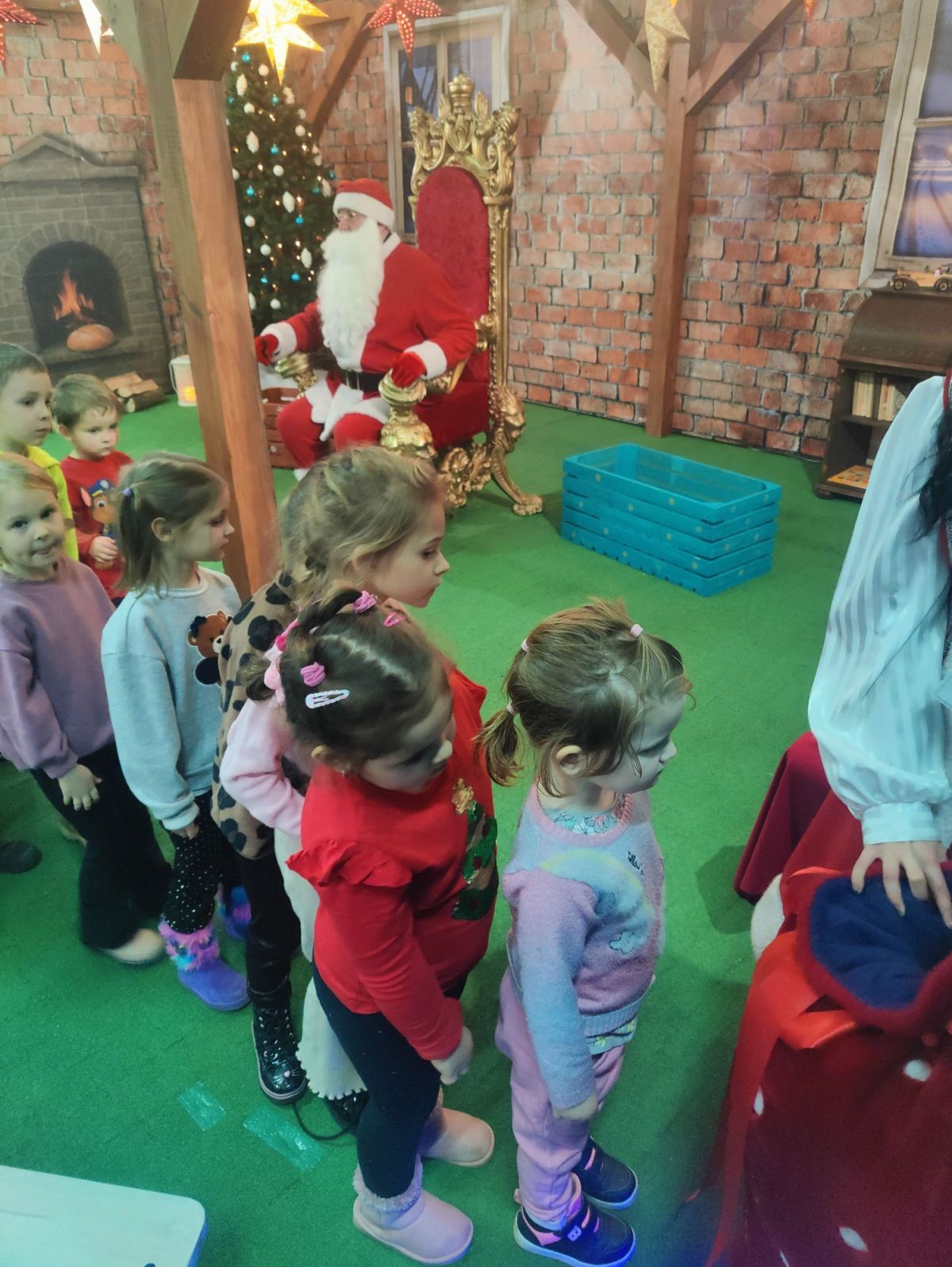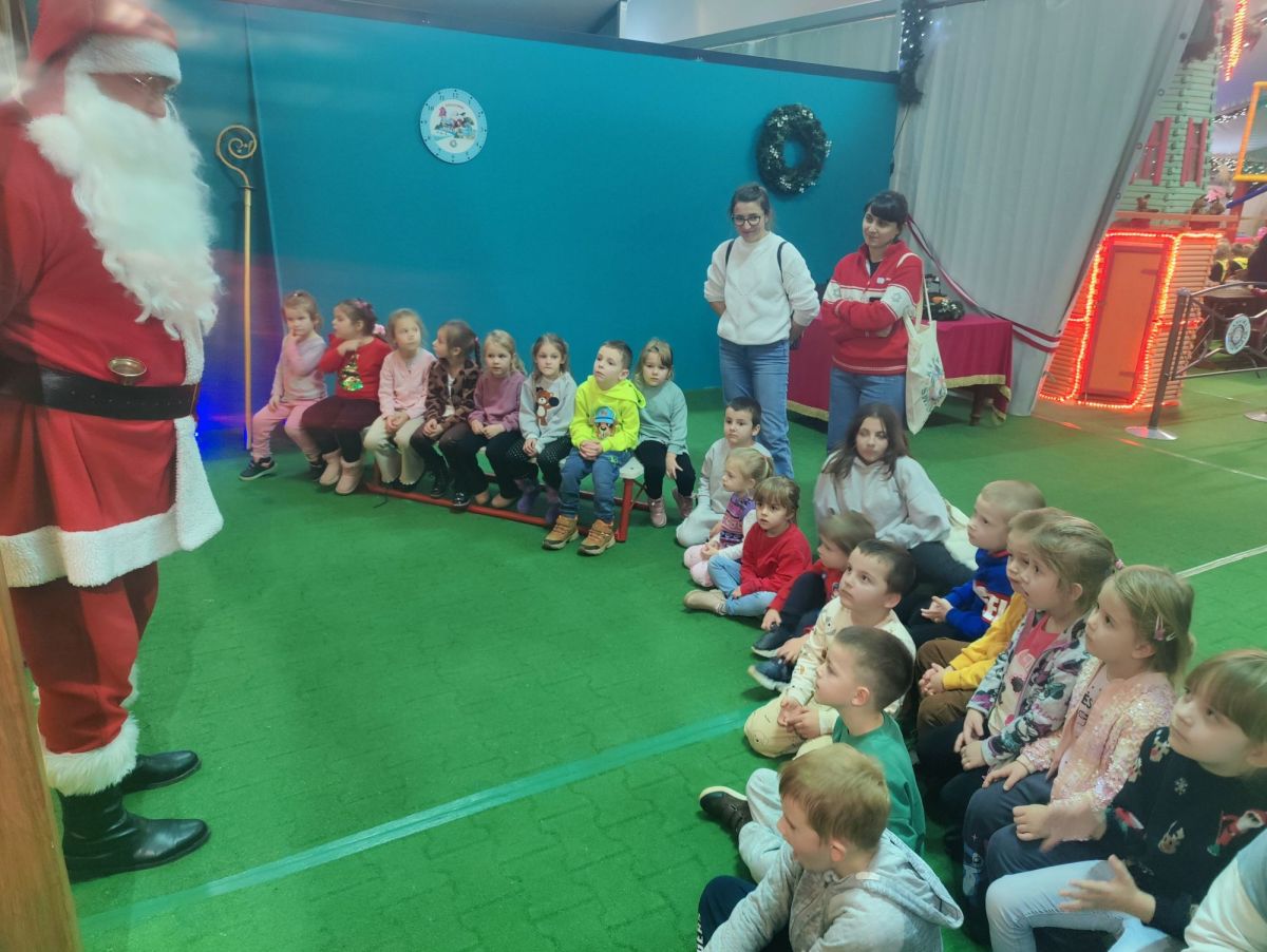 Kulminacyjnym punktem wyprawy było oczywiście osobiste spotkanie ze Świętym Mikołajem. Oczekiwanie w specjalnej sali tylko wzmagało emocje, a gdy wreszcie nadszedł ten moment, dzieci z dumą zaprezentowały swoje umiejętności, wspólnie śpiewając gospodarzowi kolędę. Mikołaj, wzruszony tak ciepłym przyjęciem, chętnie rozmawiał z przedszkolakami, a jego pomocnica – Mikołajka – zaprosiła wszystkich po odbiór zasłużonych prezentów z wielkiego worka.