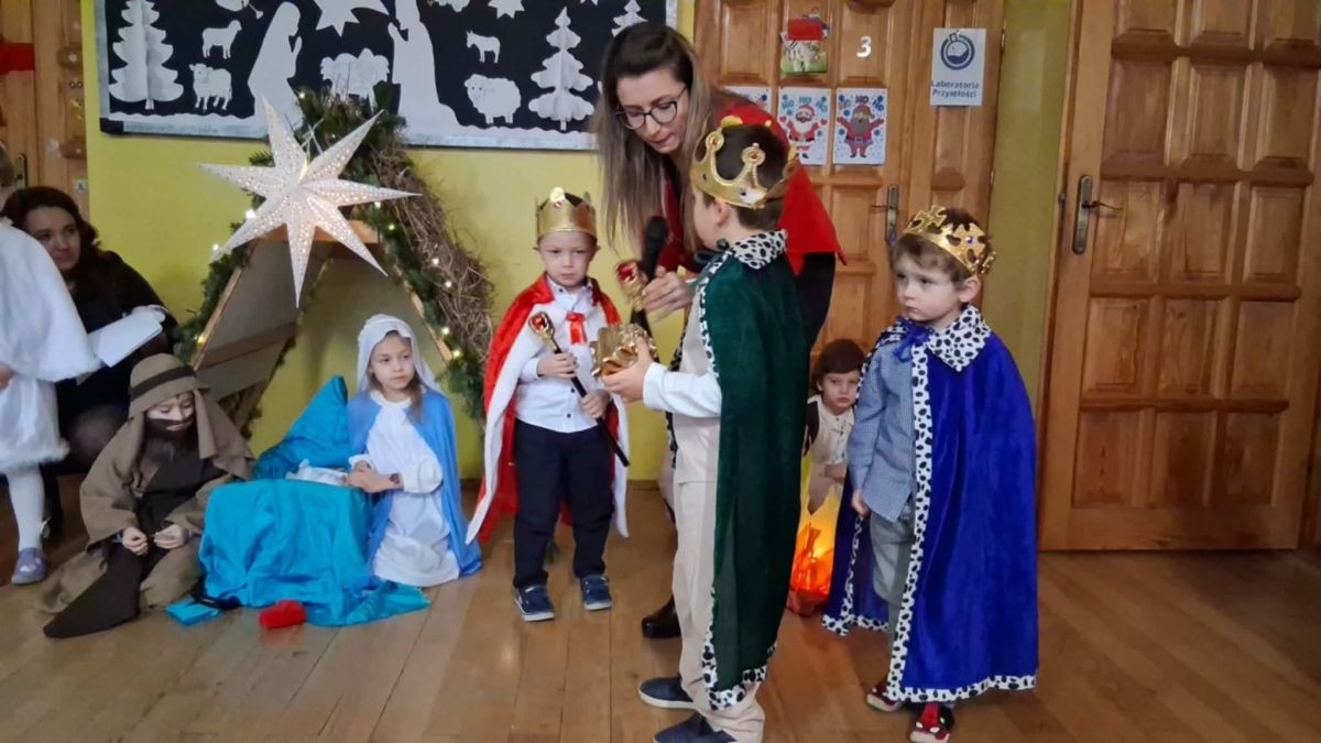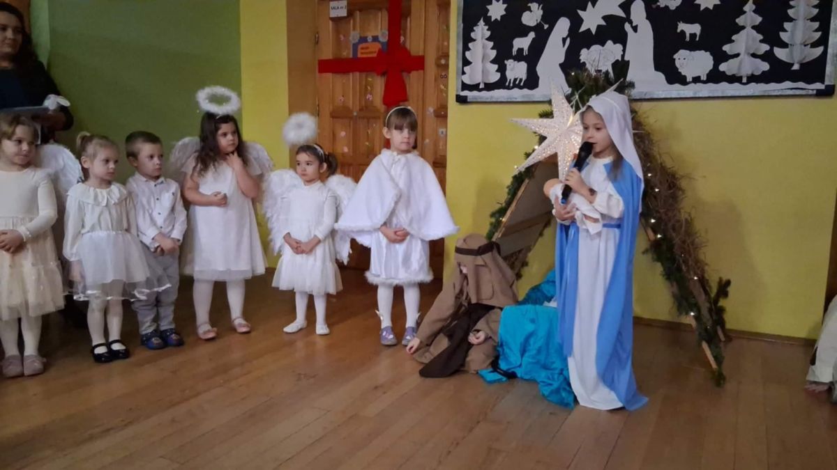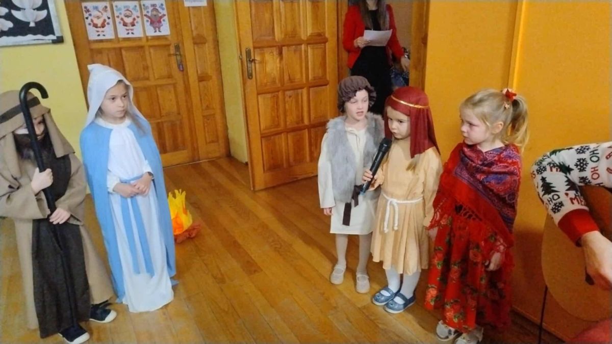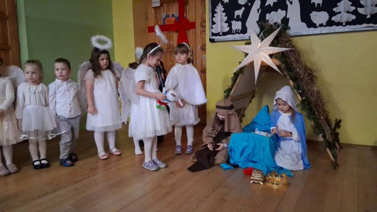 Uroku całemu występowi dodały wspaniałe stroje, dopracowane w najmniejszych szczegółach. Widzowie mogli podziwiać dostojnych Królów składających dary, zastępy biało-skrzydlatych Aniołów recytujących swoje kwestie oraz oczywiście Świętą Rodzinę: Maryję i Józefa czuwających nad małym Jezusem. Przedszkolaki, od maluszka po starszaka, z wielkim zaangażowaniem odgrywały swoją rolę, tworząc na scenie spójną i poruszającą opowieść o narodzinach Zbawiciela.