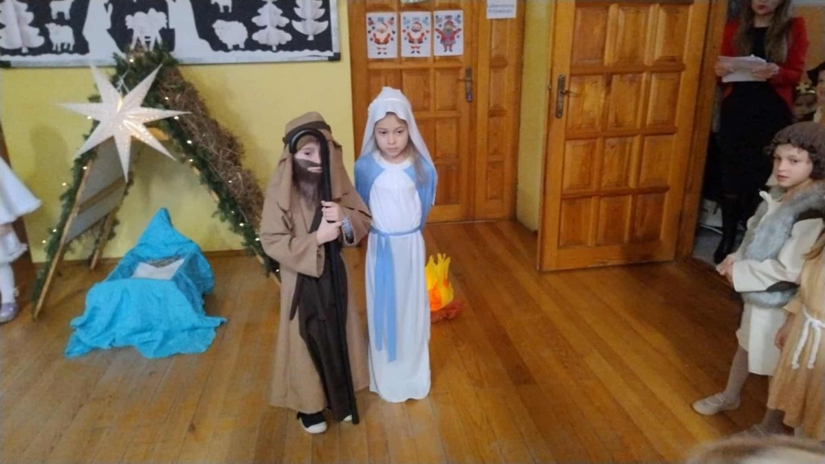 Święta Bożego Narodzenia to czas pełen magii, cudów i refleksji. Tę wyjątkową atmosferę można było poczuć w naszej szkole już 15 grudnia 2025 r., kiedy to dzieci z Oddziału Przedszkolnego zaprezentowały swoje umiejętności w tradycyjnym przedstawieniu jasełkowym. Było to wydarzenie niezwykłe nie tylko ze względu na tematykę, ale przede wszystkim na aktorów; na scenie stanęły bowiem malutkie dzieci, które zmierzyły się z bardzo ambitnym i wymagającym scenariuszem.