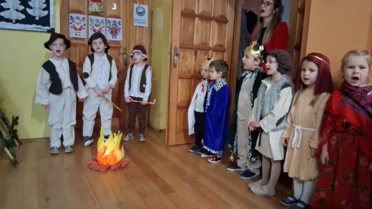 Przygotowania do tego dnia trwały tygodniami. Był to czas intensywnej pracy, nauki ról i piosenek, a także – co zupełnie naturalne – nerwów (oraz śmiechu) Pani Dominiki, Pani Kasi oraz Pani Doroty, którym zależało, by wszystko wypadło perfekcyjnie. Efekt końcowy przeszedł jednak najśmielsze oczekiwania. Sala przedszkolna zamieniła się w biblijne Betlejem, z piękną szopką i nastrojowym ogniskiem, przy którym gromadzili się pasterze.
