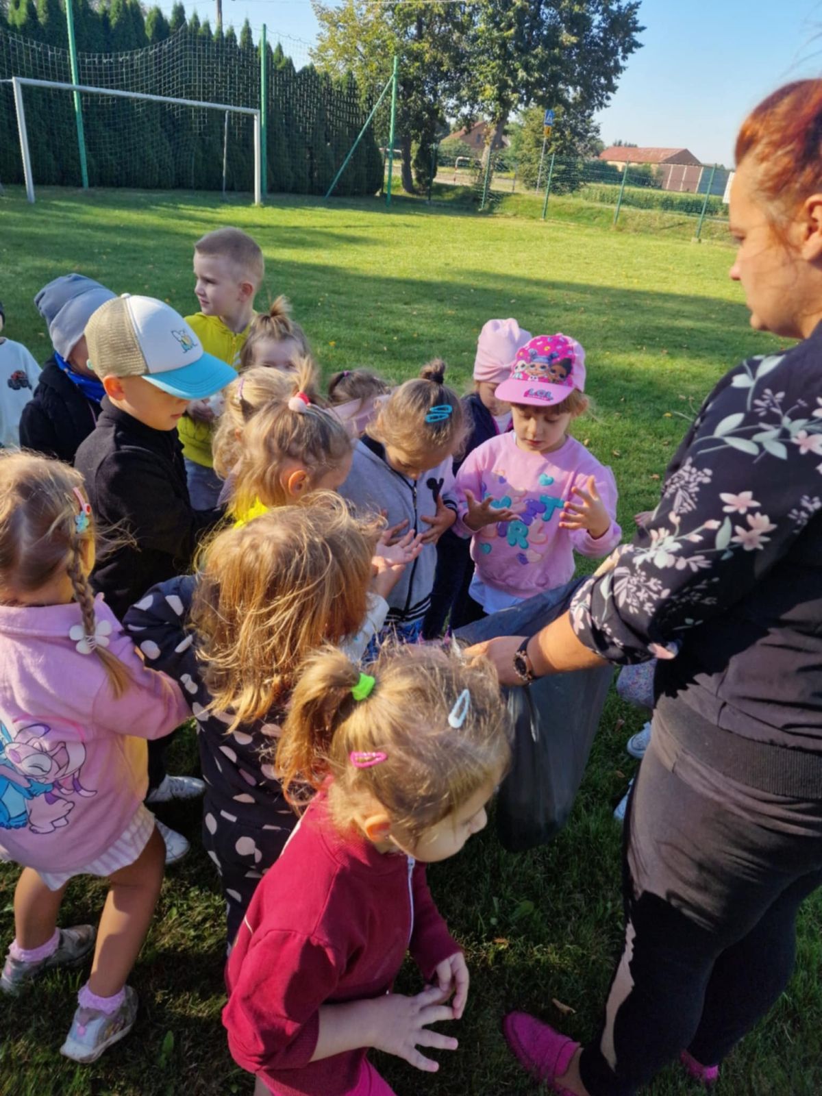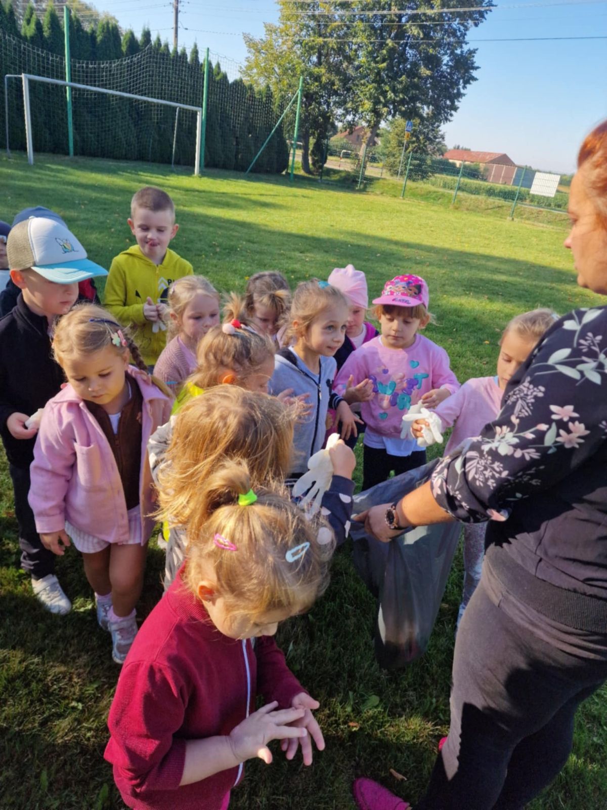 22.09.2025 r. podopieczni Oddziału Przedszkolnego wzięli udział w akcji "Sprzątanie Świata". Dzieci, uzbrojone w rękawiczki, nazbierały wokół szkoły całkiem sporo śmieci.