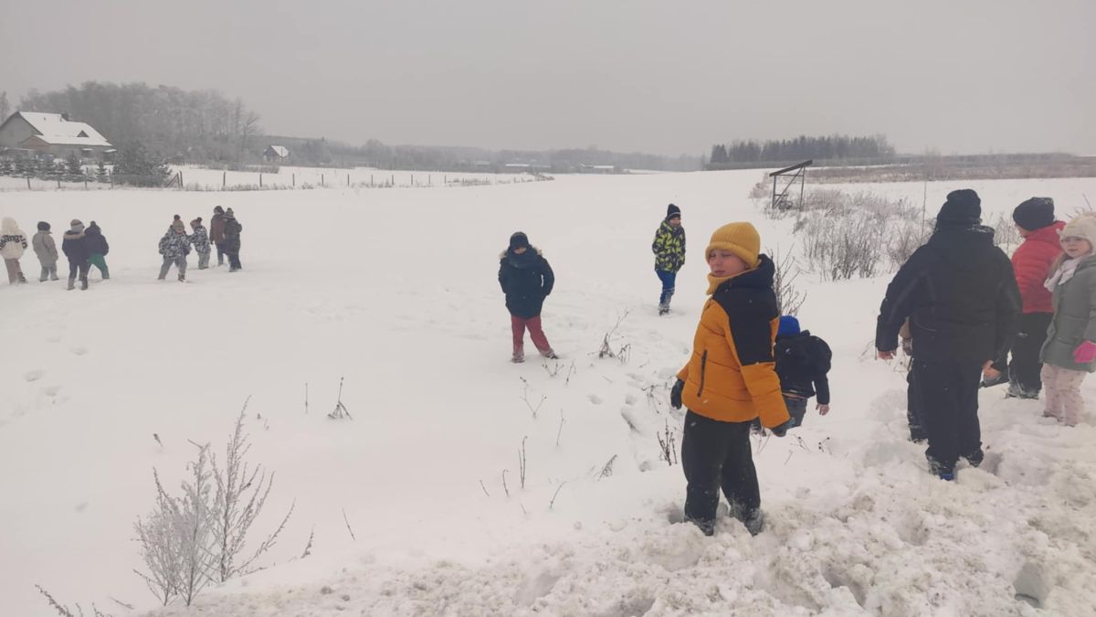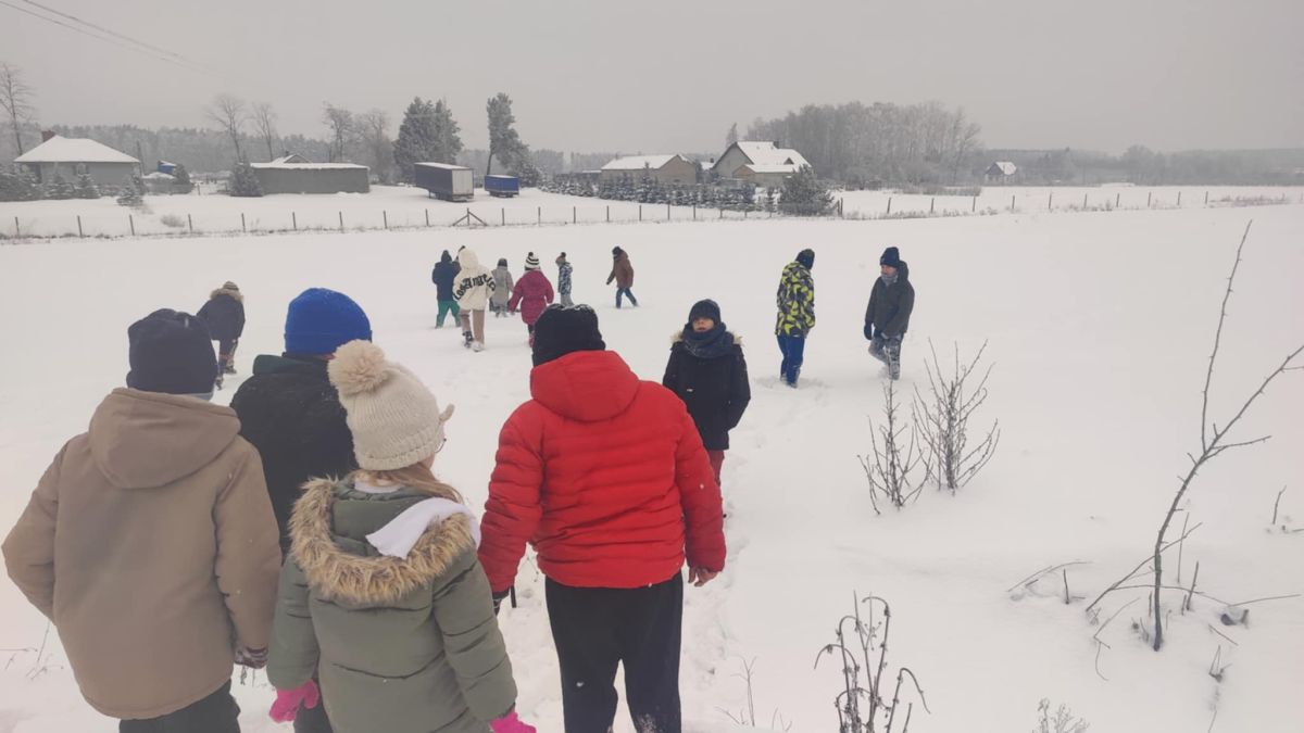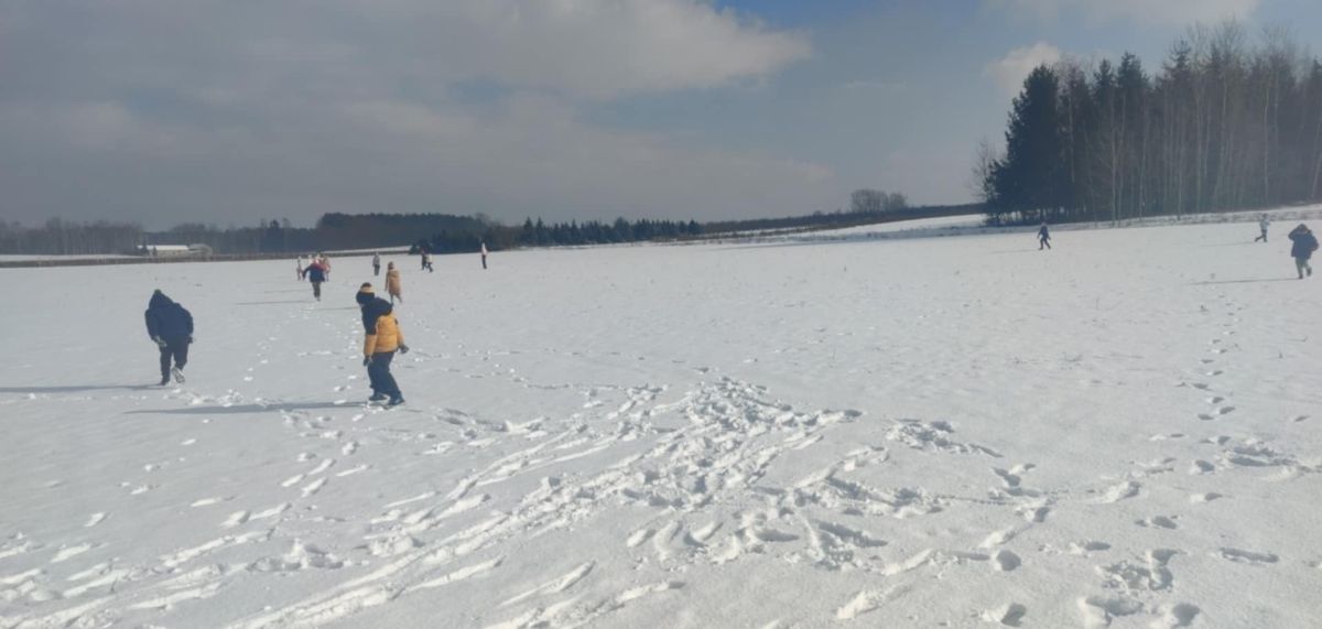 • 8. Uczniowie klas 1 i 3 na zaśnieżonym polu