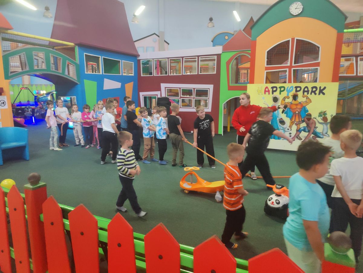 Po dawce wiedzy i nabyciu pamiątek z zoo przyszedł czas na porcję swobodnej, radosnej aktywności. Udaliśmy się do lokalnego centrum zabaw Happy Park, gdzie przez kilka godzin nasi podopieczni mogli dać upust swojej energii. Baseny z kulkami, liczne zjeżdżalnie i tory przeszkód oraz automaty do gry stały się areną do rozwijania sprawności motorycznej, zbierania bilecików i wygrywania nagród. Był to również czas na wspólny posiłek, który zregenerował siły przed drogą powrotną.
