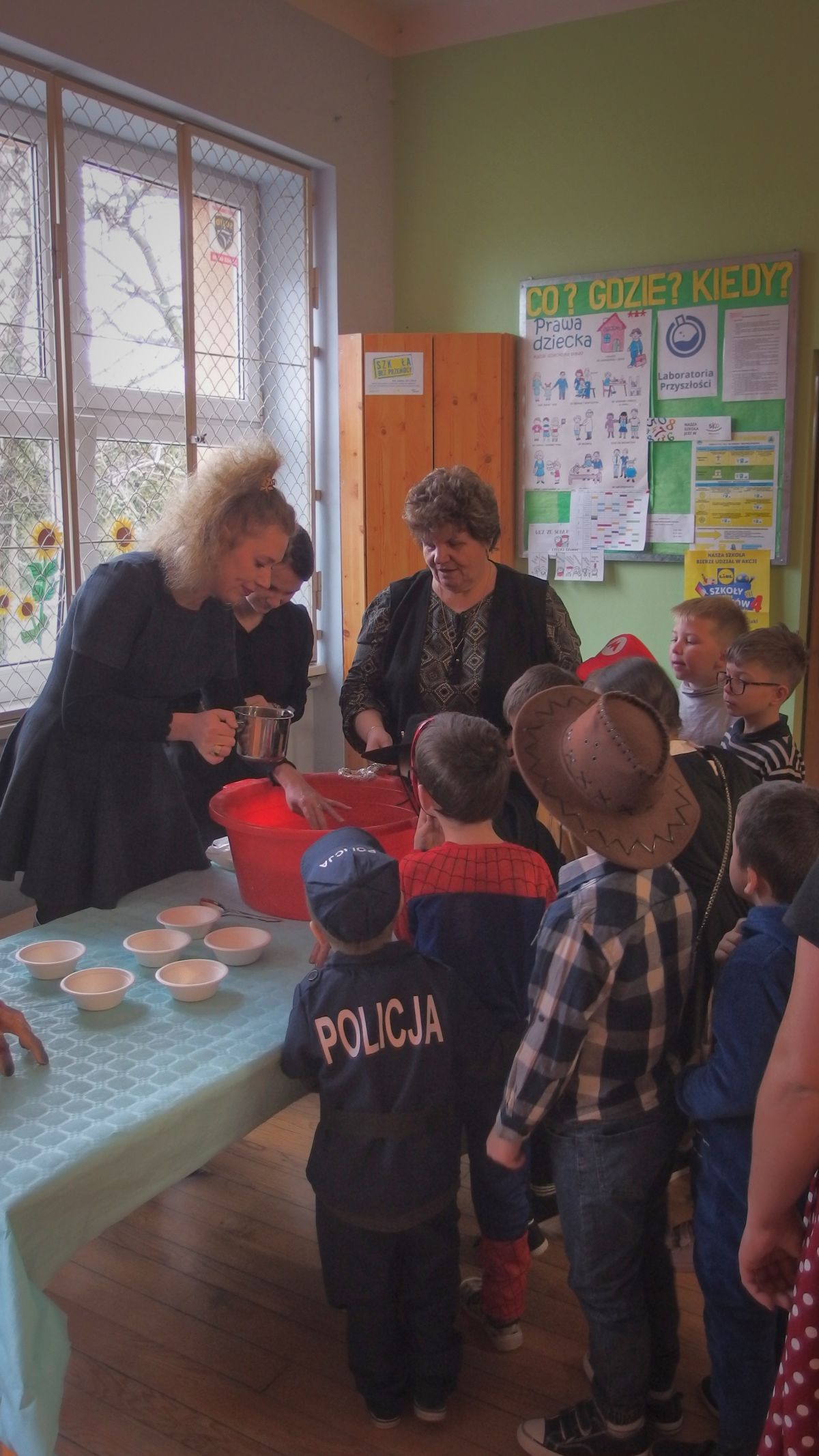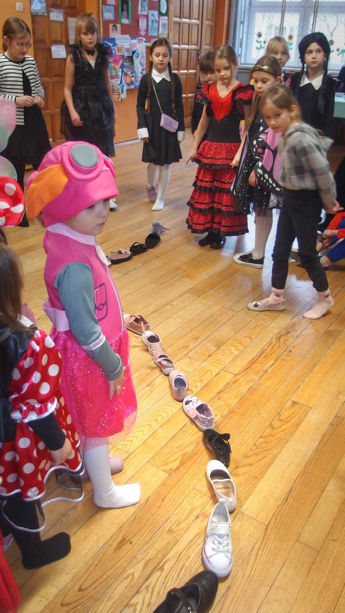 Gdy tylko teoria została przyswojona, szkolne korytarze i sale wypełniły się feerią barw i postaci rodem z najpiękniejszych baśni. Uczniowie, od przedszkolaków po najstarsze klasy, wykazali się niezwykłą kreatywnością w doborze strojów. W tłumie można było dostrzec Kubusia Puchatka, Zorro, Kapitana Amerykę, przeróżne królewny, Spidermana, dwie Myszki Miki, policjantów, superbohaterów oraz wiele innych osobistości. Co niezwykle budujące, do zabawy z wielkim entuzjazmem włączyli się również dorośli – pracownicy szkoły i grono pedagogiczne, którzy swoimi przebraniami udowodnili, że w każdym z nas drzemie dziecko spragnione beztroskiej radości.